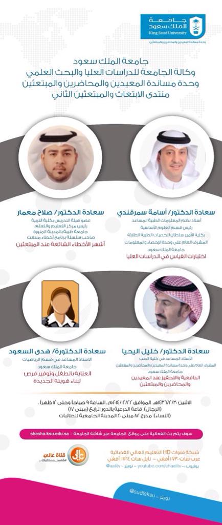 #منتدى_الإبتعاث_والمبتعثين الثاني في#جامعة_الملك_سعود (@_KSU) بعد غد الإثنين 22 ديسمبر، والدعوة عامة للجميعpic.twitter.com/2aWyVkoeEl