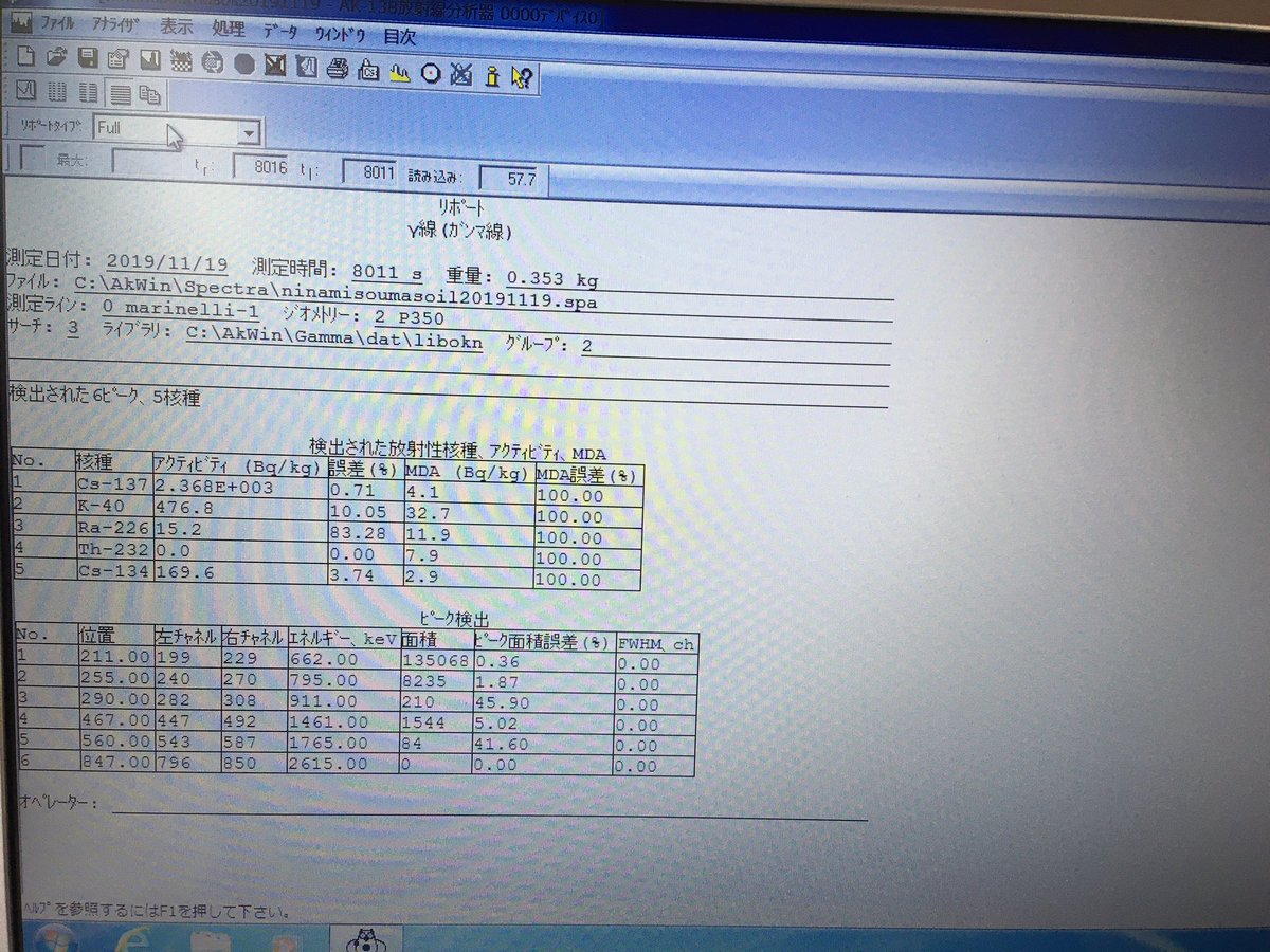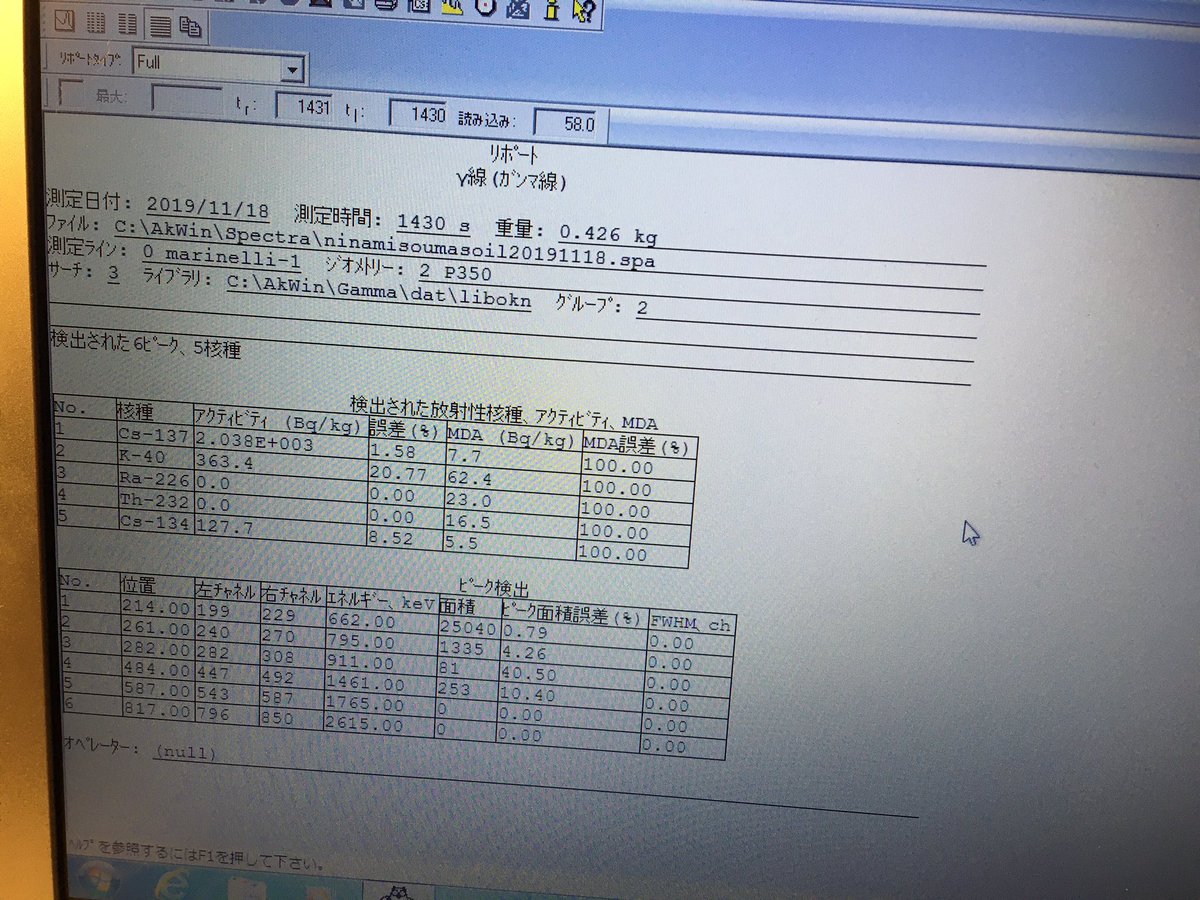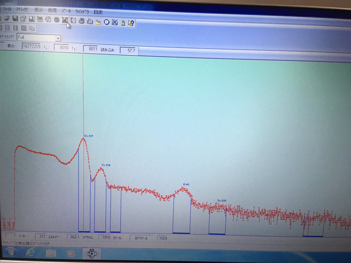 グランドレモン栽培土壌をdryで測ると。測定値はKg当たりで示される、土壌の水分量によって値が変わる。 因みに昨日(18日)wetで測った値は2,165.7bq/Kgでしたがdryでは2,537.6bq/Kgでした。 レモンは4.1bq/Kgでしたから移行率は更に低くなる。
