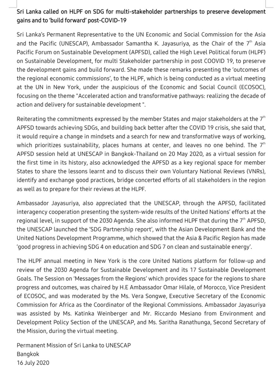 #UNESCAP, as the Chair of the 7th#APFSD, called#HLPF on#SDG , for multi Stakeholder partnership in post COOVID 19, to preserve the development gains and build forward.pic.twitter.com/vWQdEzPuYH