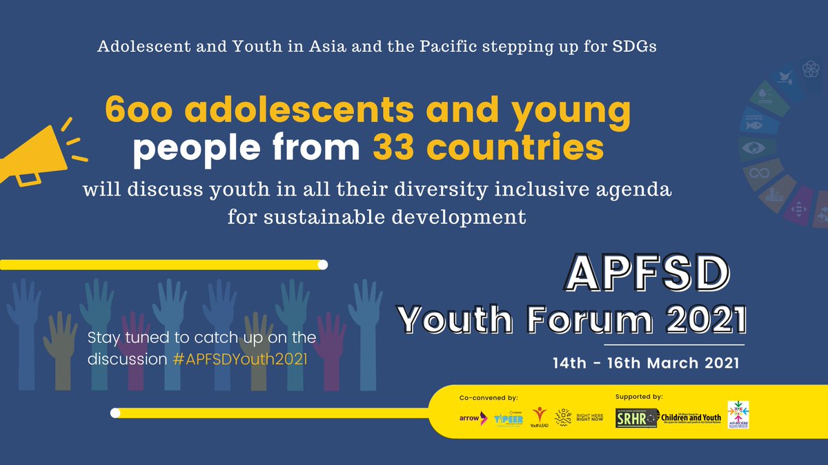 #APFSDYouth2021 is happening on 14th - 16th March. The Largest APFSD to date with more diverse youths.#APFSD2021#APFSD#Youth4SRHR@YouthLEADAP_@ARROW_Women@ypeerappic.twitter.com/FfMYZXUWat