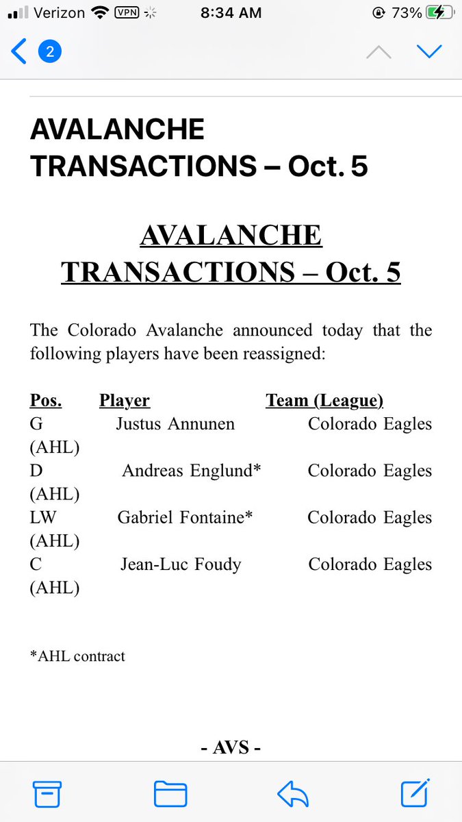 #Avs announce four more roster cuts. Still no real surprises. pic.twitter.com/HwVSuAQOSK