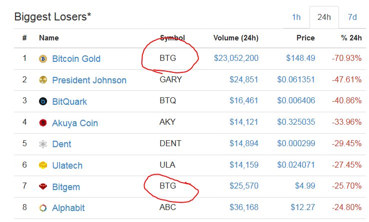 #BitcoinGold use the same symbol of#Bitgem on the markets.