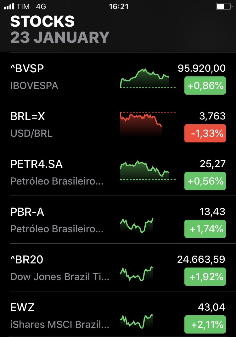 #Brazil Real jumps 1.33% recovering most of yesterday’s slump to 3.76 per US Dollar Bovespa Stock Index continues trading in all-time high territory, but in dollar terms, Brazilian stocks are 40% below all-time which could mean Geronimo in the months ahead. pic.twitter.com/PMlpgzQPsd