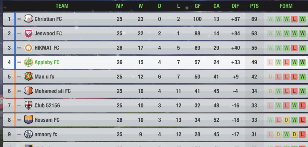 @topeleven season as we finish 4th in the league to get#ChampionsLeague football next season as well as promotion to league level 7!#COYApic.twitter.com/DmyS32roNB
