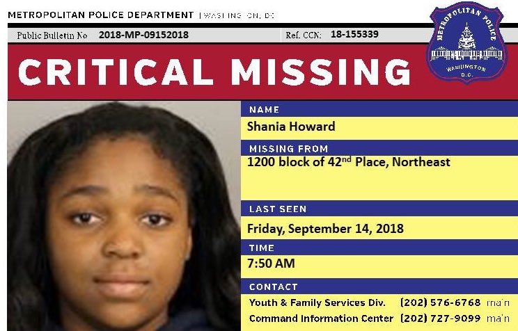 Please help spread the word! CRITICAL MISSING TEEN: 14-year-old Shania Howard was last seen in the 1200 block of 42nd Place, Northeast