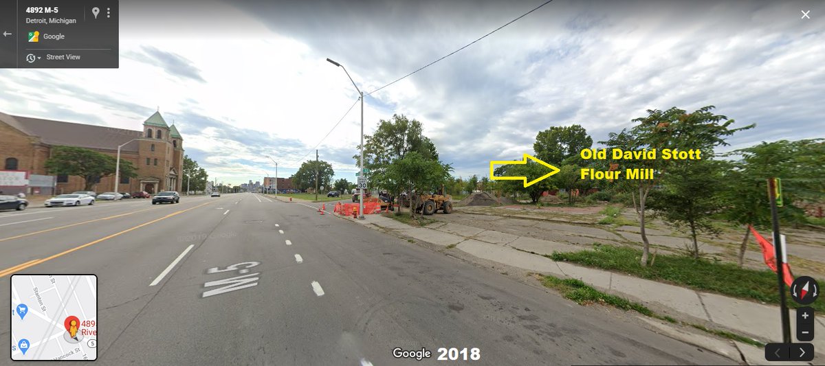 #Detroit, Grand River & W Warren, 1937-2017. This was a busy area of the city in the '30's. David Stott Flour Mills, visible in center of this NE view, would soon declare bankruptcy, leading to a 1945 liquidation. Building w/ dual towers was St Leo Catholic Church, closed in 2017 pic.twitter.com/FpCRTakR80
