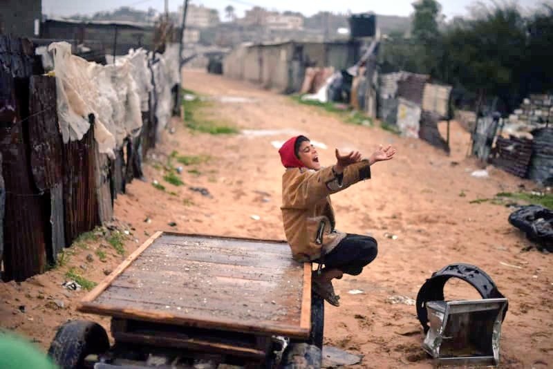 #Palestinian boy stands happily under the rain in Khanyounis city in the southern#Gaza pic.twitter.com/WyTFmuvLPK