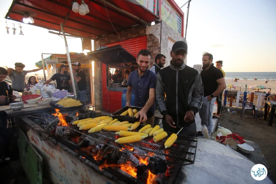 #Gaza Corniche serve grilled corn in a different, tasty way!