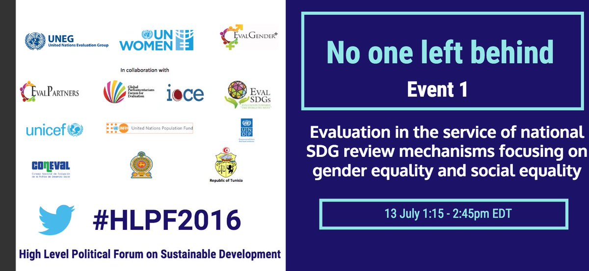 #HLPF2016 side events on#evaluation and#SDGs, 13 July http://ow.ly/aoMM301WD2S#HLPF pic.twitter.com/et8DqZmNMZ