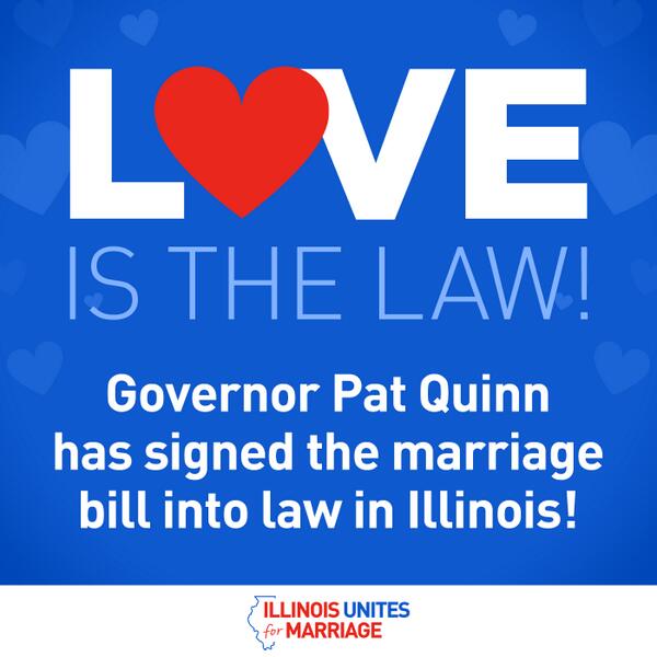 @LambdaLegal: Governor Pat Quinn has signed the Illinois Religious Freedom and Marriage Fairness Act!#ILove#IL4M pic.twitter.com/a8UMKKMNoN