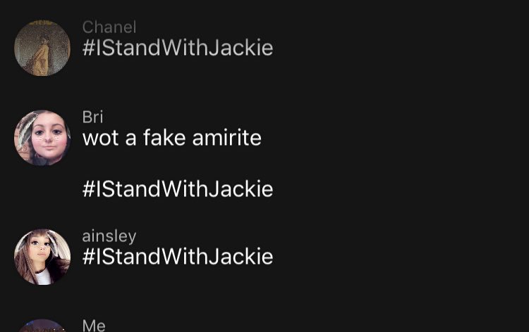 #IStandWithJackie https://twitter.com/kristy082699/status/809120345303252992 … -