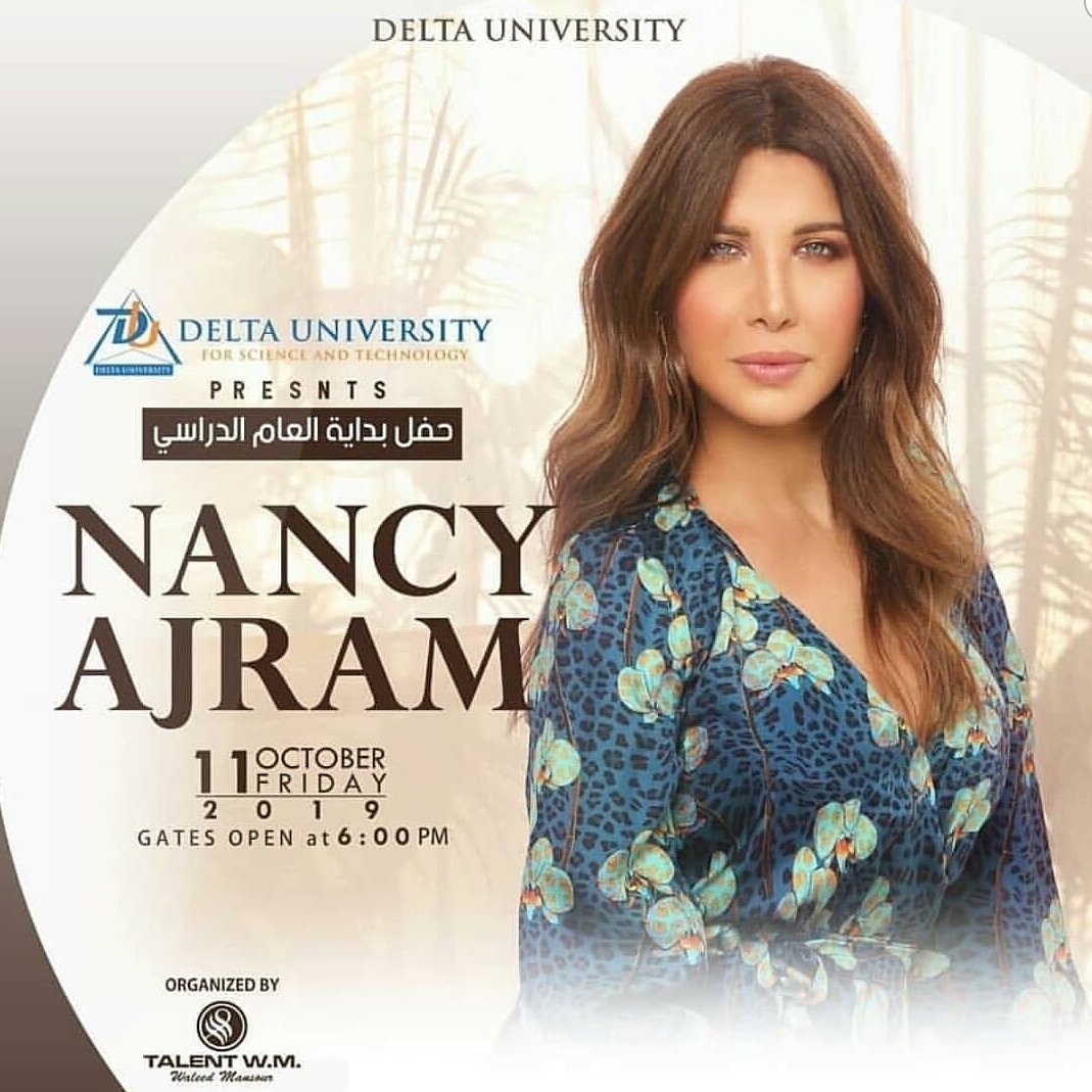 La Star International @nancyajram se fera un plaisir de chanter sur scène à@deltauniversity le 11 octobre prochain#mansoura#egypt