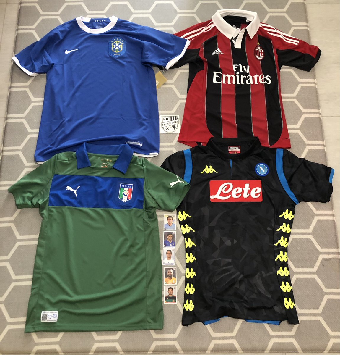 @footie_kits today. Heavy Italian influence from#Milan#Napoli and the#Azzurri, plus a classic#Brazil shirt too. Nice touch with the#WorldCup2010 stickerspic.twitter.com/wwpefiFLSs