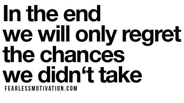 In the end we will only regret the chances we DIDN'T take. GO AFTER YOUR DREAMS!