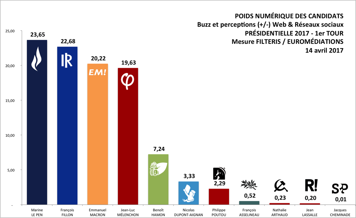 #FILTERIS /#EUROMEDIATIONS du 14 avril /#Poidsnumérique des candidats à la#présidentielle2017#buzz#bigdata#pasunsondage pic.twitter.com/voWpg3eHhq