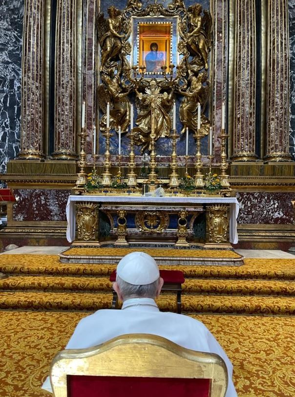 #PopeFrancis thanked all who were close to him with prayers. Before returning to the Vatican, he stopped at the Basilica of St Mary Major to thank our Lady. “Let us not forget to pray for the sick and for those who assist them,” he said. pic.twitter.com/C5fSKoreyS