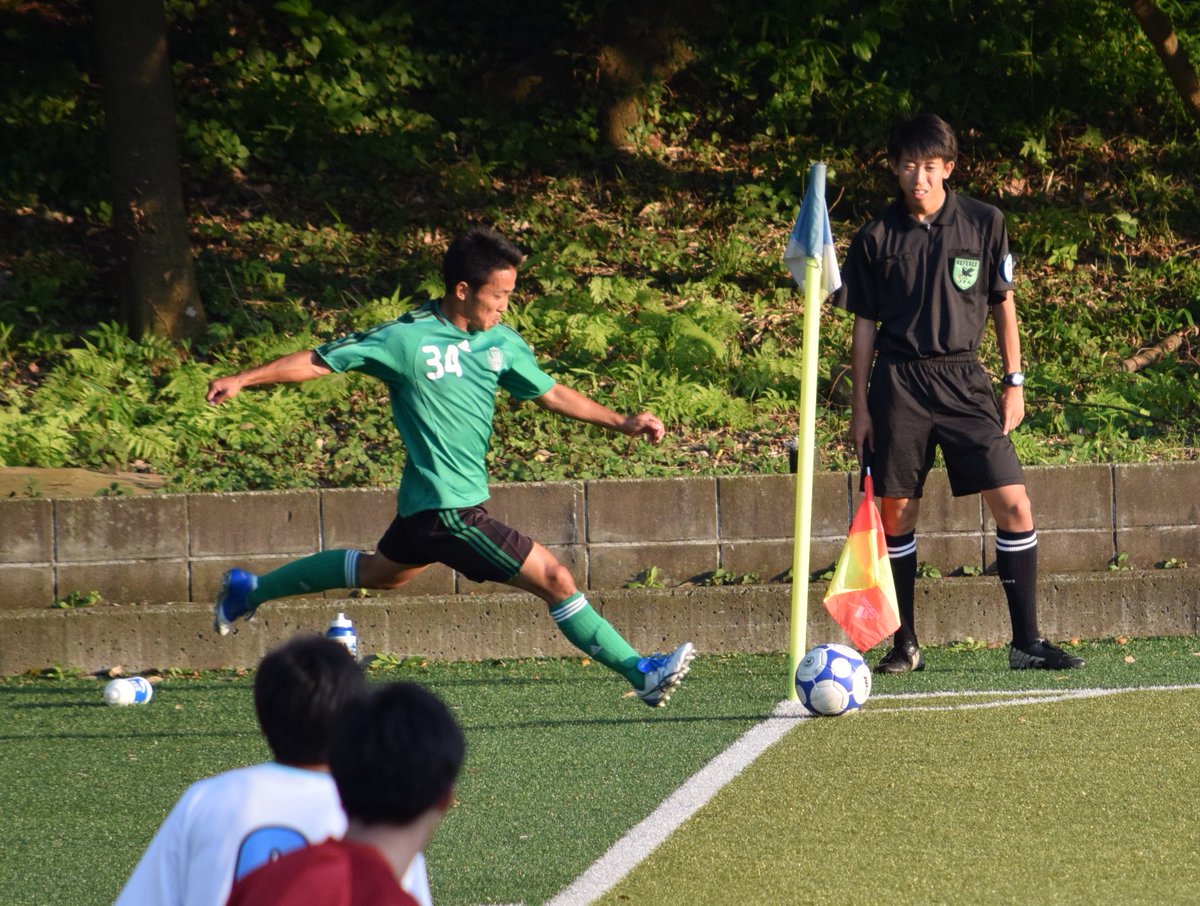 【Iリーグ 専修大学U-21】 葛谷将平(熊本県立大津高校) 浮き球で相手をいなすプレーをしたかと思えば、CKでは左足で質の高いボールを供給。左右問わずボールを蹴れる足元の技術に長けた選手。
