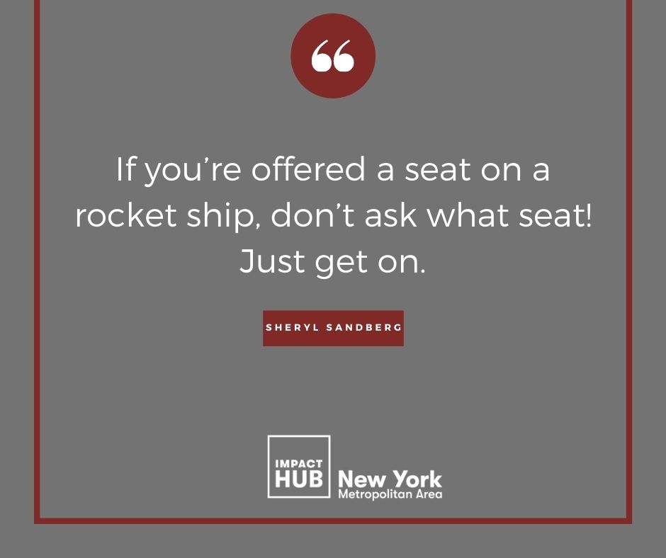 "If you're offered a seat on a rocket ship, don't ask what seat! Just get on" - Sheryl Sandberg. Happy new week changemakers go out there and go get that seat at the table.
