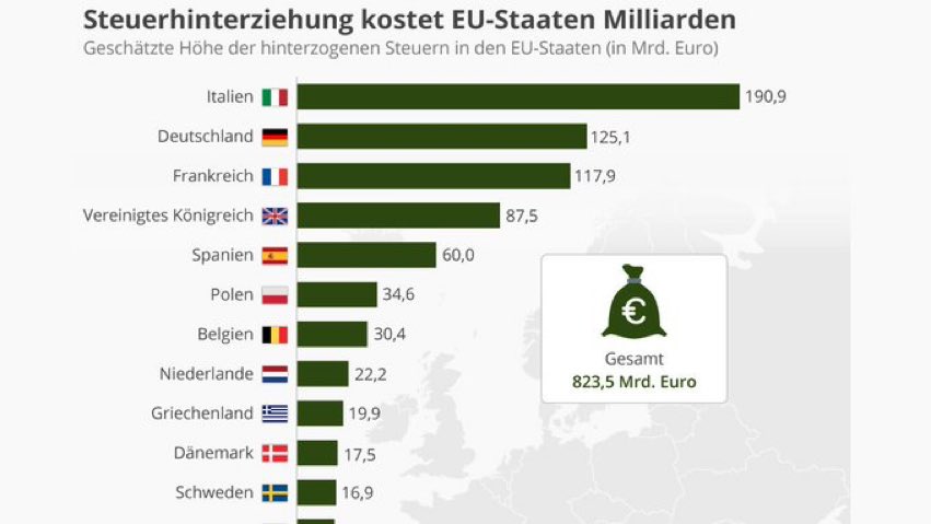 Geschätzte 125 Mrd. € entgehen dem deutschen Staat jährlich durch