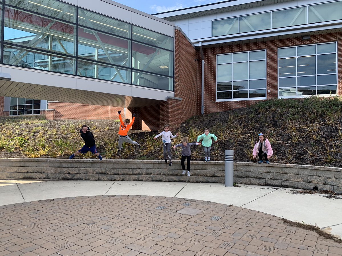 Jumping for joy on our mask break! I’m really going to miss being w/ the kids at school. After rolling down the hill last week, they covered me w/ leaves!