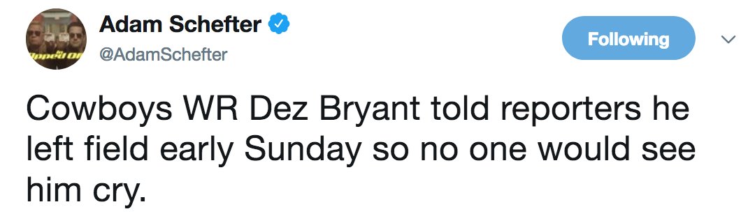 @DezBryant, I’m sorry it ended this way. You were supposed to be a Cowboy for life. Thanks for always putting your blood, sweat and tears out there for Dallas even when some morons didn’t appreciate you. Also, it was a catch. Good luck