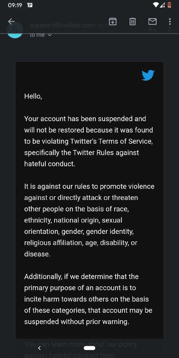 This is such BS. They found him in violation of the rules against hateful content, but his account is still up. As usual.