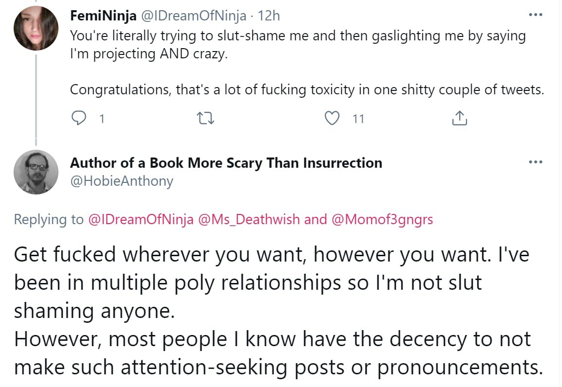 CW: sexual harassment A guy tells a woman she should be sexually harassed for fun, she calls him fucking disgusting and SHE cops a 12 hour ban for it? Fuck Twitter, man