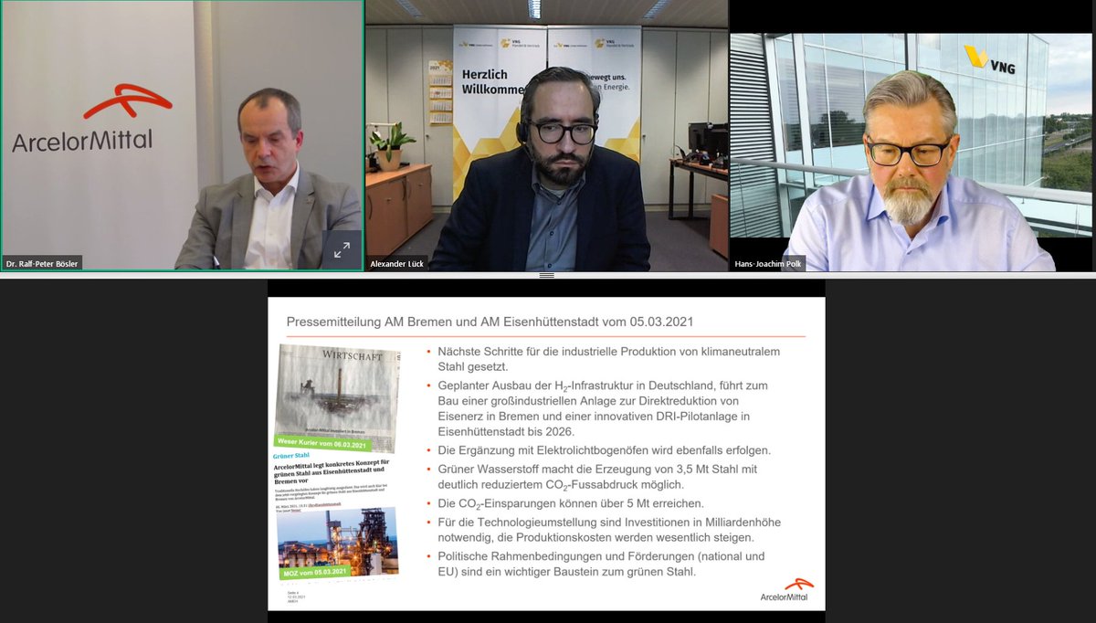 @Handelsblatt Webinar: Dr. Ralf-Peter Bösler, COO Primary bei@ArcelorMittalD - vielen Dank für den interessanten Einblick aus der Praxis auf dem Weg zu grünem#Stahl und@VNGAG-CEO Hans-Joachim Polk für das fundierte technische Expertenwissen!#HBStahlpic.twitter.com/LyvKPbFprJ