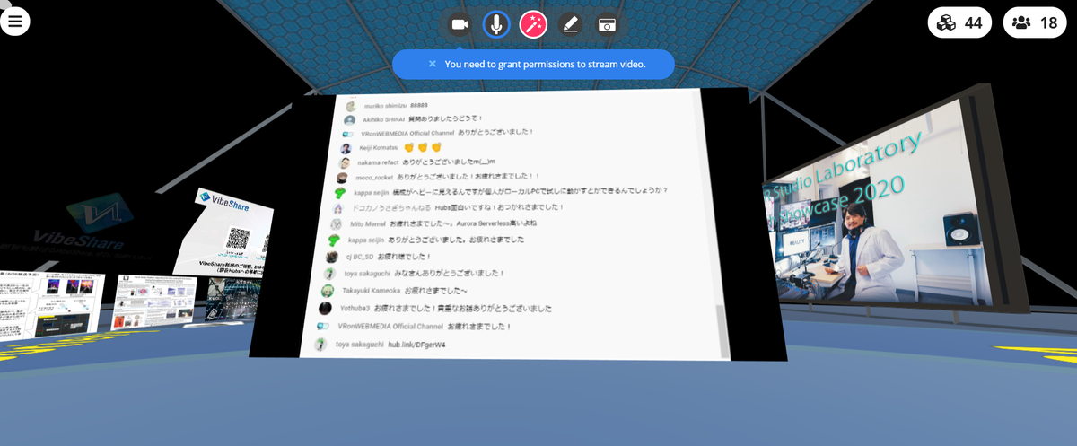 #VRSionUp!7#HubsStudy ご視聴・ご参加ありがとうございました。 YouTubeLiveのご視聴も離脱がほとんどなく、ご登壇の中身の濃さと参加者の質を感じます…!懇親会はまだまだ熱い語らいが続きますが、これは#VTechChallenge#VTC20 につながる感じがします現場からは以上です!#MozillaHubspic.twitter.com/4890TEHqFr