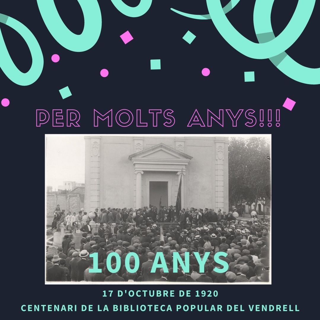 I ha arribat el gran dia!!! Per molts anys Biblioteca Popular del Vendrell per aquests 100 anys!!!