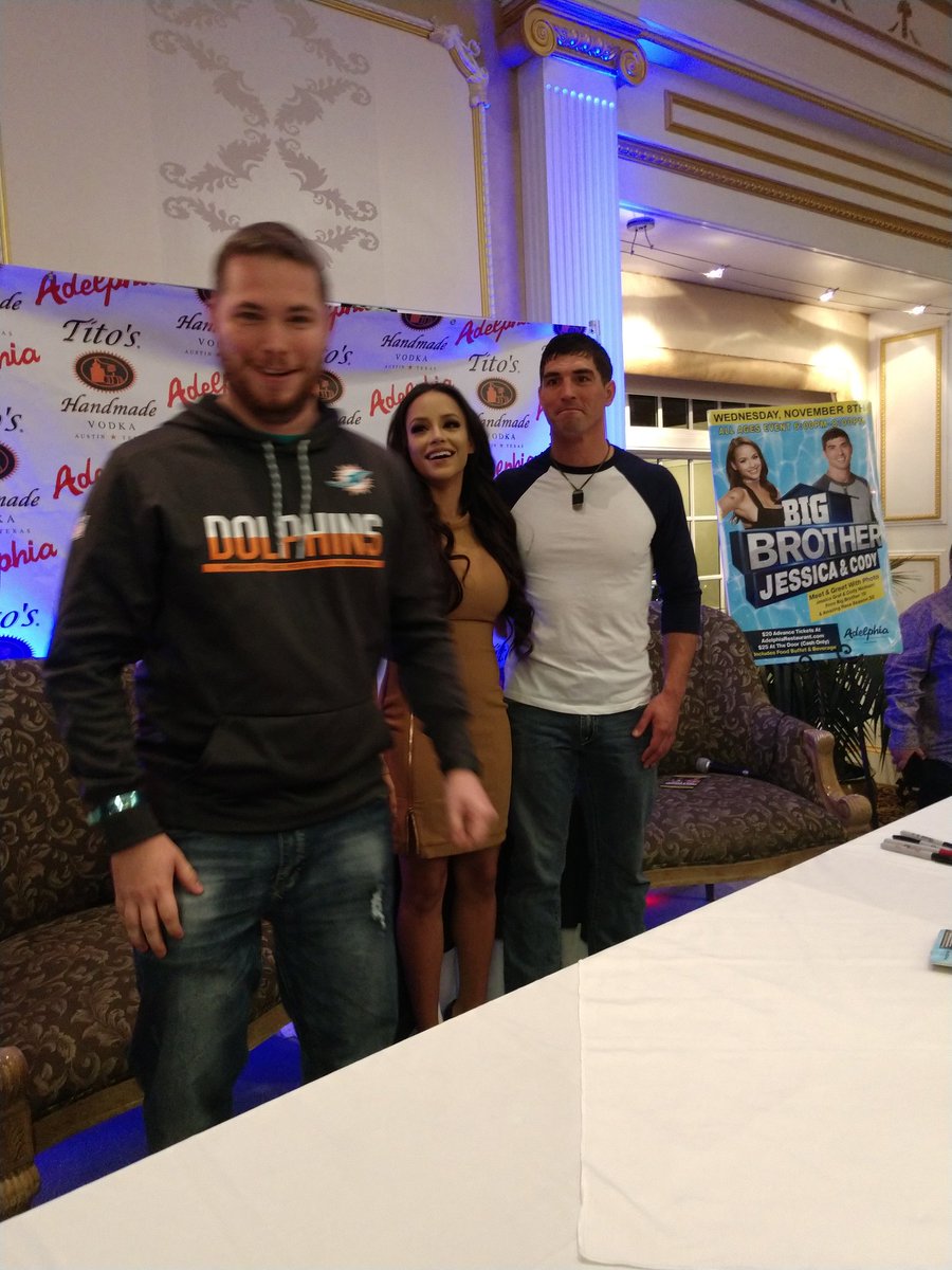 @thejessicagraf and@codythemarine from#BigBrother. Jess is kicking me off stage for being a Dolphins fan pic.twitter.com/izLpUk9UIW