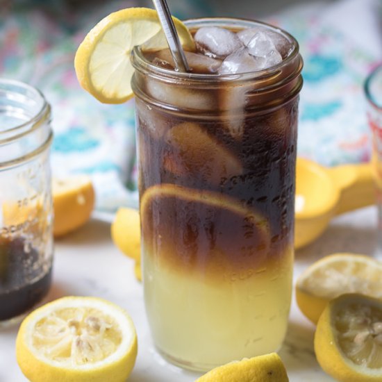 Tarta de limón, crema fresca, reducción de Oporto y frutas.