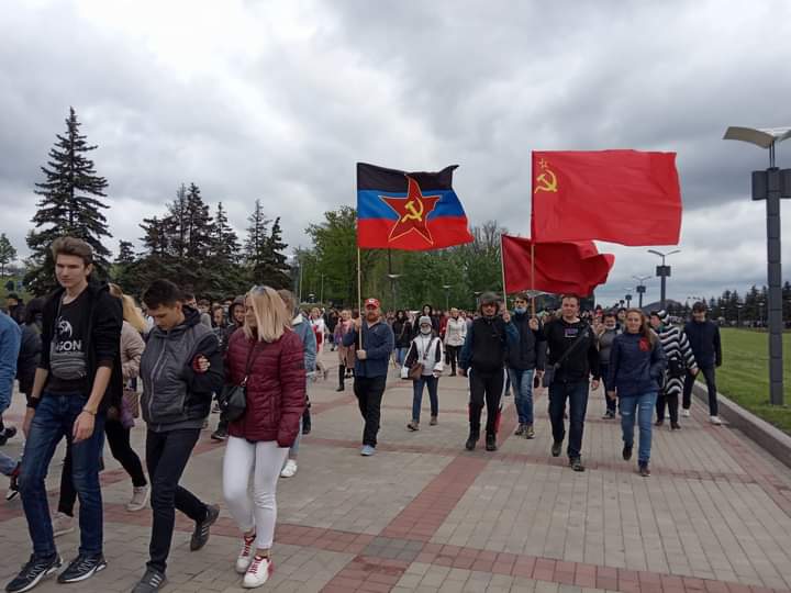 #VictoryDay, when the#SovietUnion and partisan movements defeated fascism in 1945. Today, our comrades in#Donetsk joined the#antifascist march. Stop U.S.-Ukraine war in Donbass!https://twitter.com/communistdawn/status/1391362825499648000 …