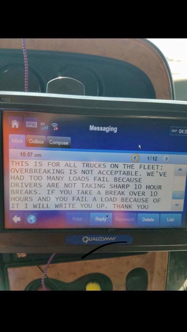 #ELD and offer to help “fix” his on duty time to deliver in time so as to not lose his truck. pic.twitter.com/fwcL7aCMxl