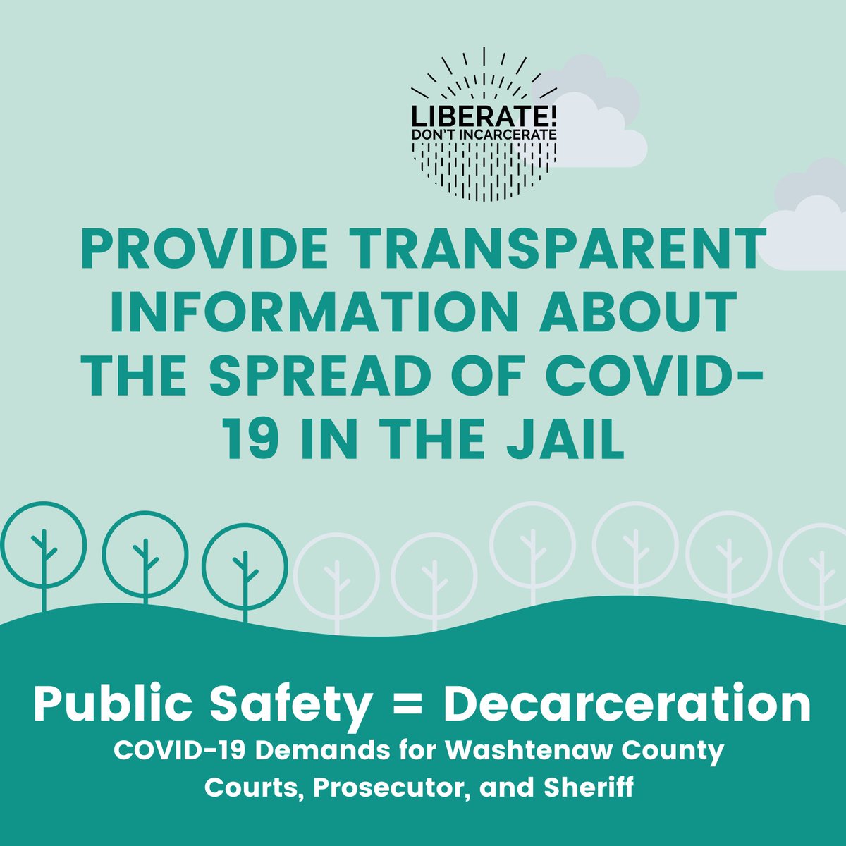 Our 3rd demand to Washtenaw County officials: provide transparent info about the spread of COVID-19 in jails and prisons. We still don't have concrete info on how many people are being released after Whitmer's EO.
