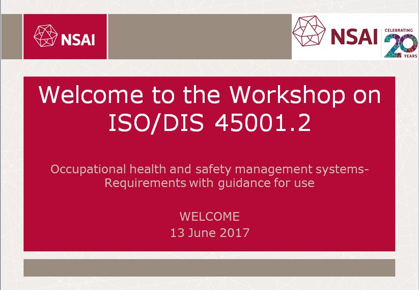 Workshop this morning on ISO DIS 45001. Review the draft & submit comments through http://www.nsainep.ie/Home/Details/9250 …