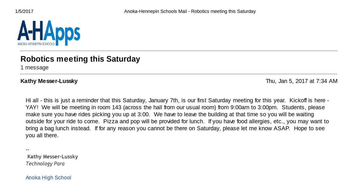 #OMGKICKOFF is coming! Remember to be at AHS at 9AM in room 143 on Sat, Jan 7! Pizza and pop will be provided. Check ur email 4 details! pic.twitter.com/Gqdt36S7dJ