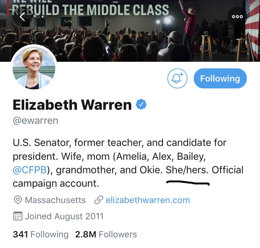 What`s with all those democrats using pronouns in their Twitter profile descriptions? Don`t you have some dignity. Again, kudos to