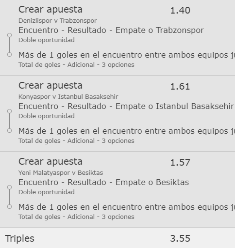 Muy buen inicio de semana a todos aqui dejo esta jugada en parley triple (3.55) desde Turquia Voy a dejar otro par de jugadas en telegram Suerte