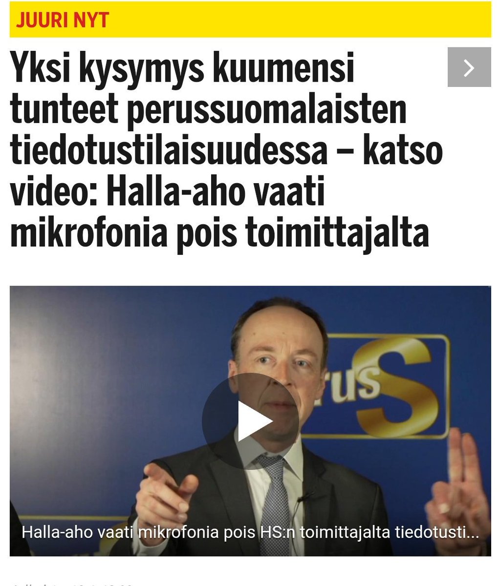 #persut vaativat sananvapautta - paitsi jos toimittaja yrittää kysyä Halla-aholta hänen blogistaan, silloin rynnätään yleisöön repimään toimittajalta mikki kädestä.#vaalit2019 pic.twitter.com/JJkRaCZEaQ