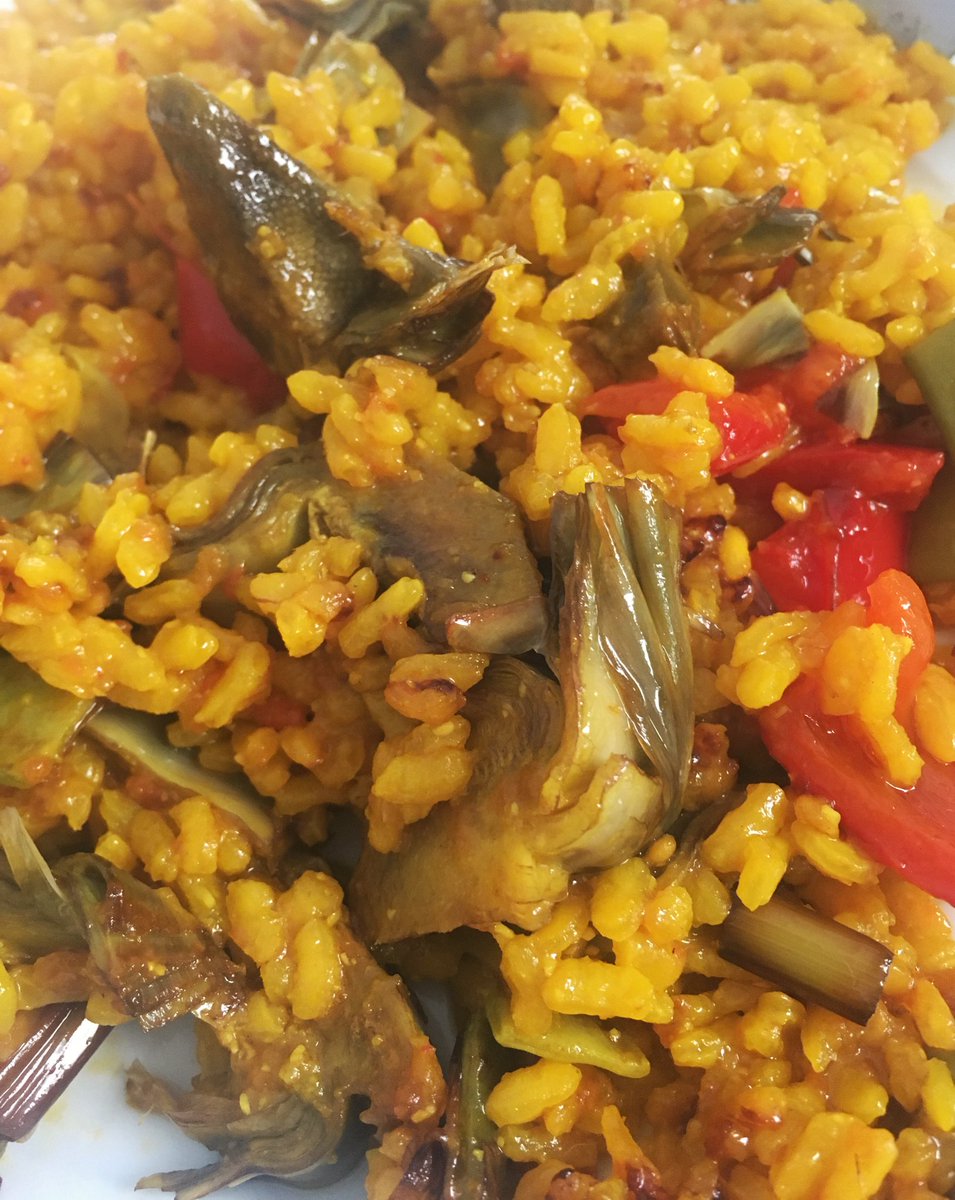 Y hoy tostadas de tofu con mermelada y membrillo, revuelto de espárragos con ajetes frescos y fideuá con setas.