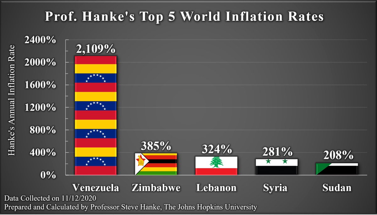 #Venezuela’s reign as world’s top inflator ever end? While#Maduro rules, I wouldn’t count on it. Currently, VNZ’s#Inflation rate sits at 2,109%/yr. Behind it are#Zimbabwe and#Lebanon, at 385%/yr and 324%/yr, respectively.pic.twitter.com/fbp0114wfy