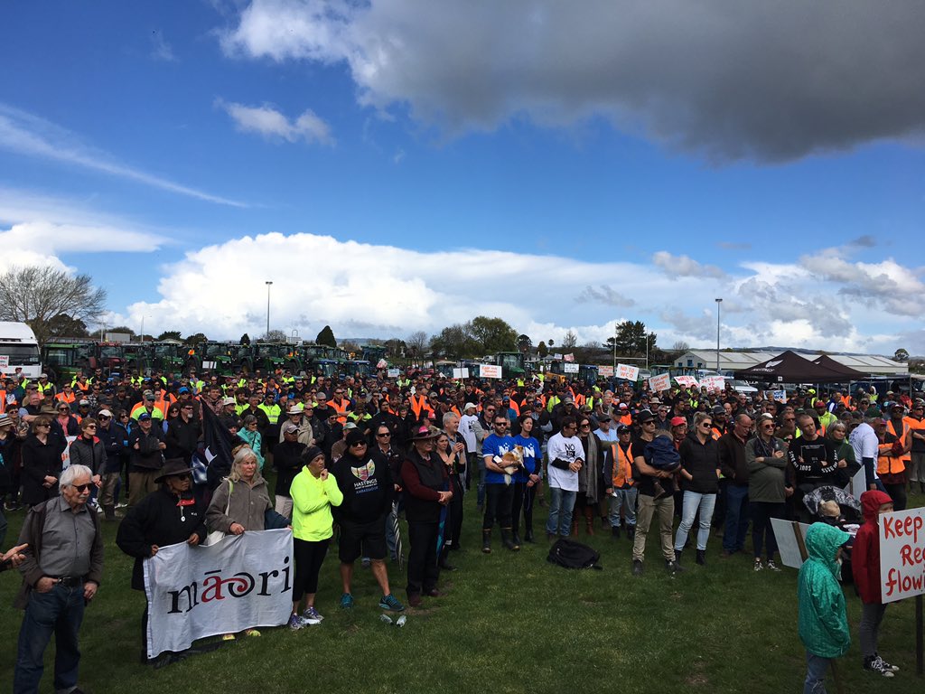 Hundreds turn out to protest water conservation order in the Hawkes Bay, keep our region flowing, the signs say.