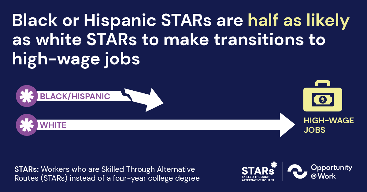 Our new research, Navigating with the STARs, finds that Black and Hispanic STARs are underrepresented in transitions to high-wage jobs. https://opportunityatwork.org/navigating-stars-report …