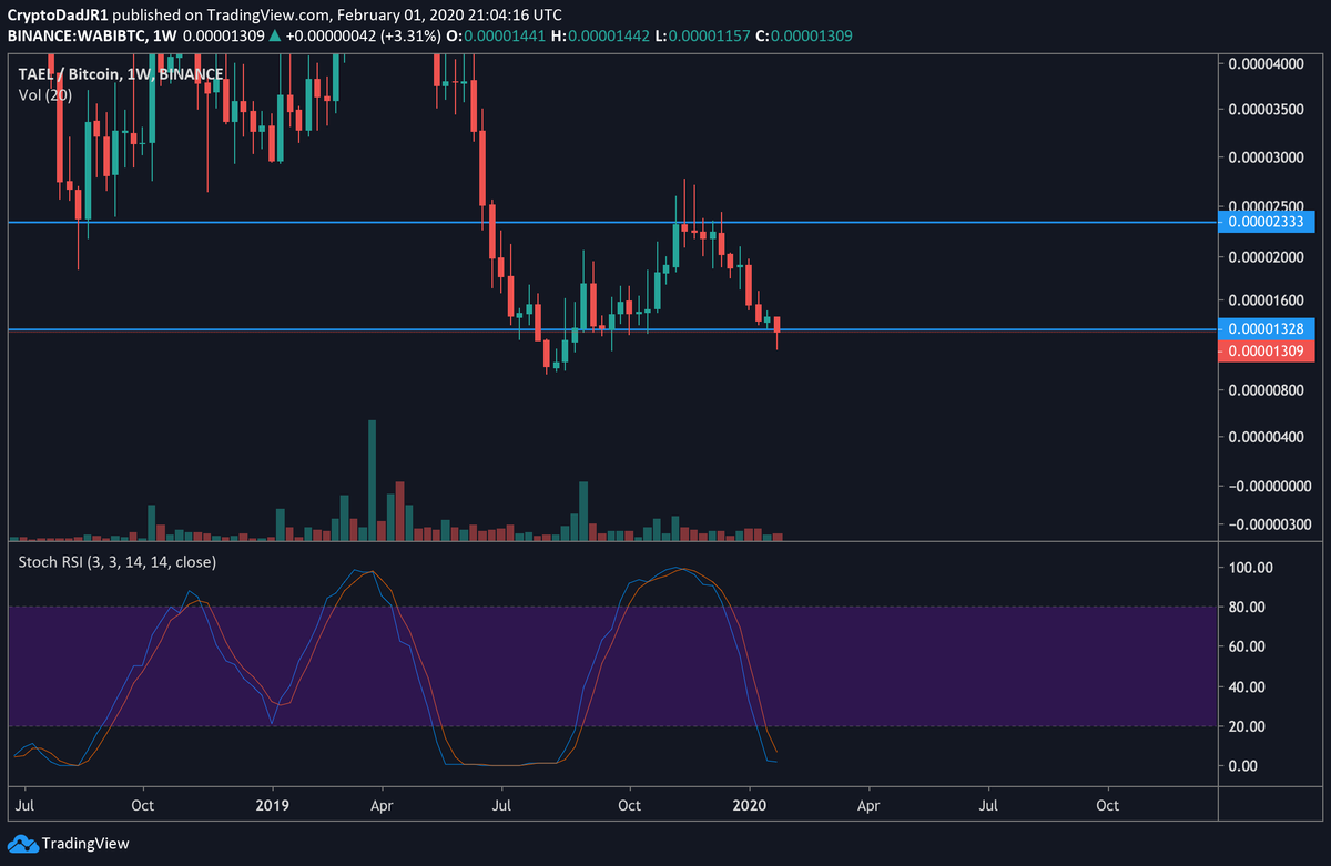 #WABI Closing weekly above 1330 sat. Stoch crossing and I am a buyer. Wabi is highly undervalued and at same time very promising coin. Highly recommend it.$ALTS$BTCpic.twitter.com/XfR7MauFbS