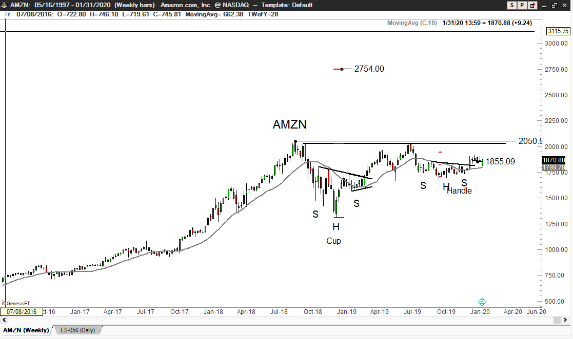 $AMZN should open at or above 2050, thus beginning the completion of a massive Cup and Handle pattern with a target of 2754. Thus will begin the annihilation of stock market perma-bears. pic.twitter.com/e73R2heqTX