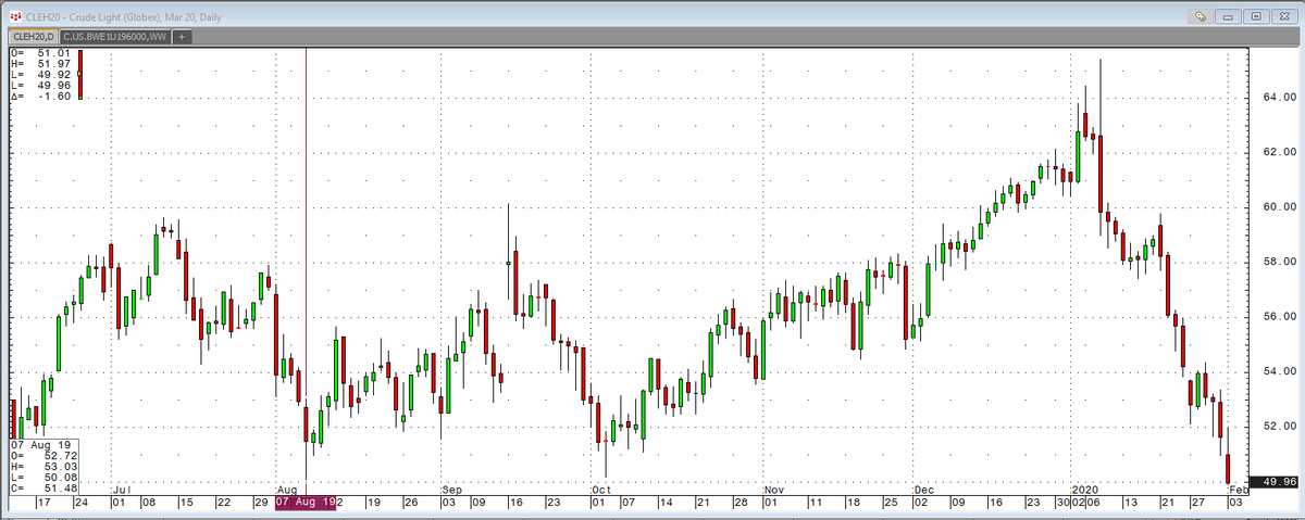 ! China falling oil demand or lack of it b/c of the #coronavirus is hurting prices in the short-term.#Energy#Brent#CrudeOil$ECA$TCW$ATH$CPG$MEG$SU$CNQ$PXD$FANG$APA$XOM$CXO$WLL$BTE$ARX$HSEpic.twitter.com/i0uuU27sEq