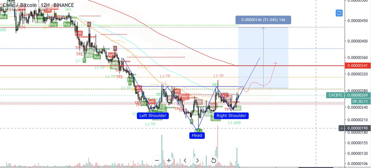 $CVC we can see nice reverse head & shoulders pattern, we should go up to 410 satoshis pic.twitter.com/qfUikNPRsN