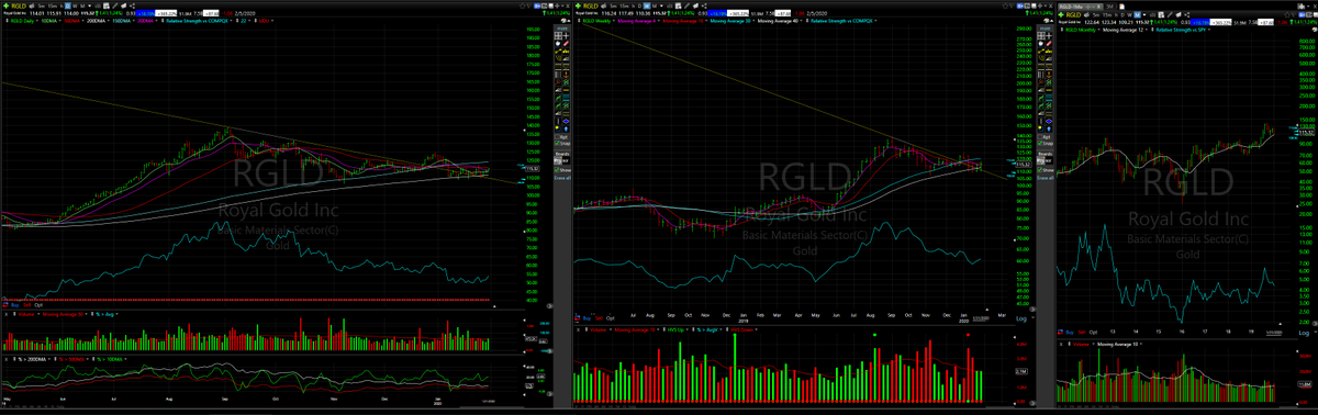$RGLD Not normally a fan of#Gold stocks, but I do love this setup off the 200DMA, after a 70%+ run from a first stage, cup base next to cup & handle base. Stock near all time highs. Industry group ranked #26 by@IBDinvestors. 3 year sales/EPS to grow 37%/16%.$SPY$QQQ$GLD pic.twitter.com/K3dERlIIVI