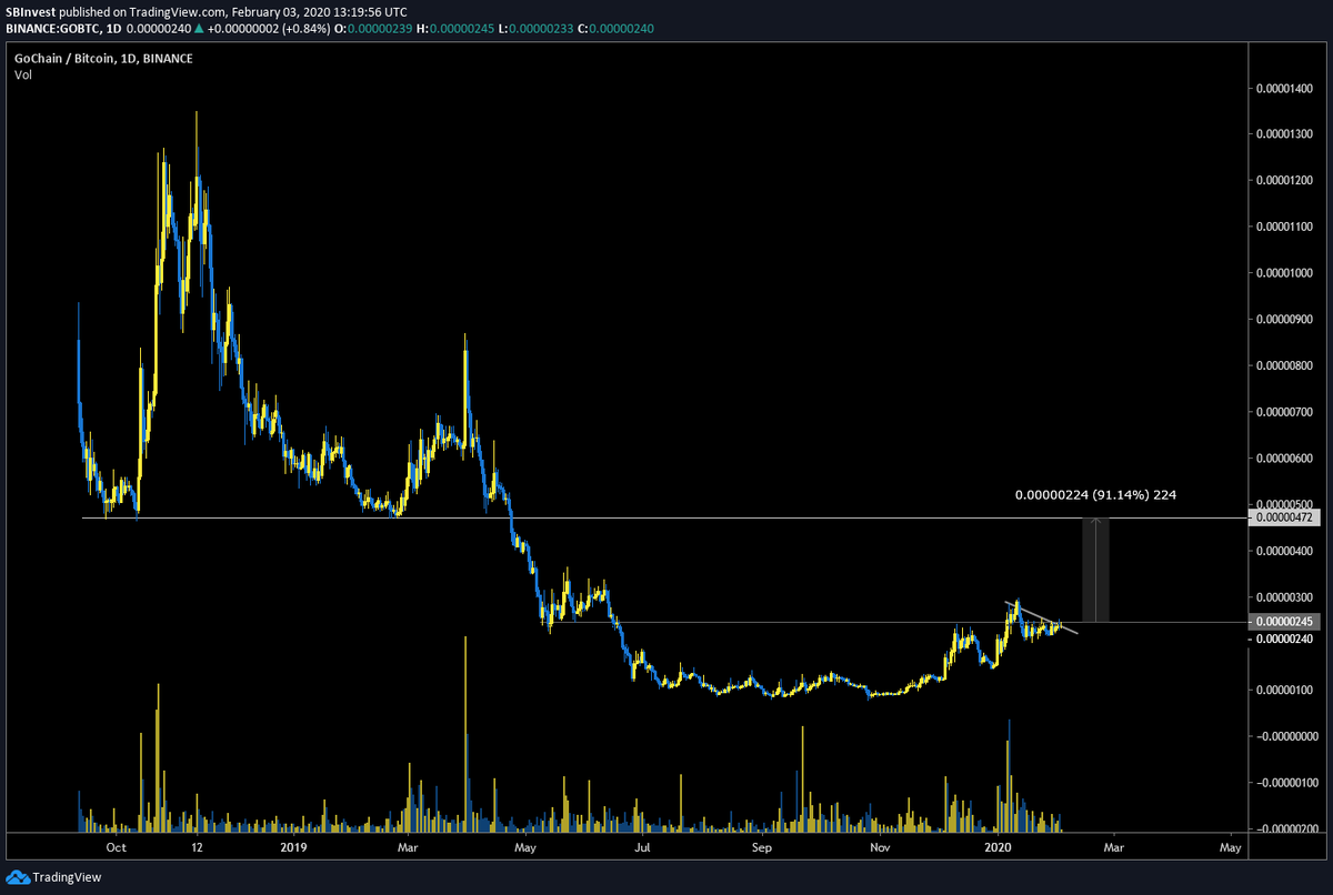 $GO 1D$GOBTC is looking good Consolidation close below an important resistance level. Once we are closing the daily above 250 i am in for a +90% What's your take on$GO? pic.twitter.com/MpWismL7Cw